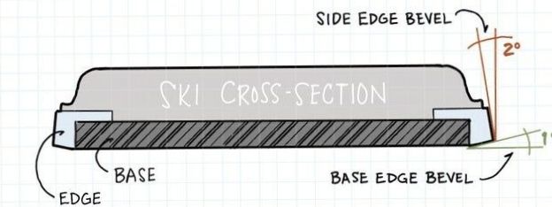 Skis/Snowboards have two types of edges. The side edge and the base edge. Each has a different purpose and is therefore bevelled differently.